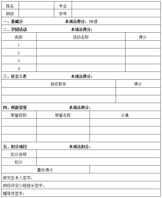 7、班级干部(除班长、团支书外)由研究生辅导员、班长和团支书进行评分。