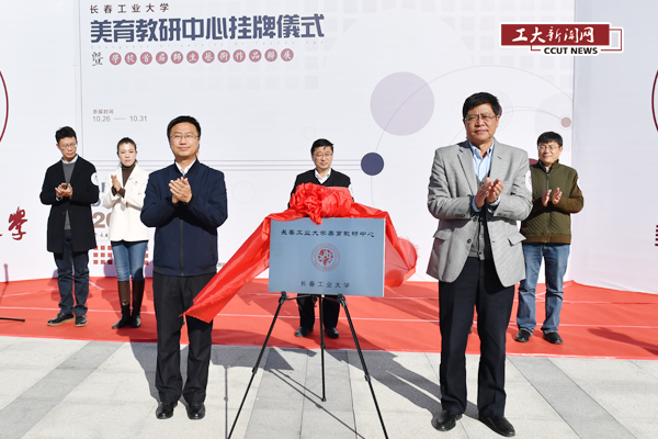 副董事长李占国和党委副书记李新为美育教研中心揭牌