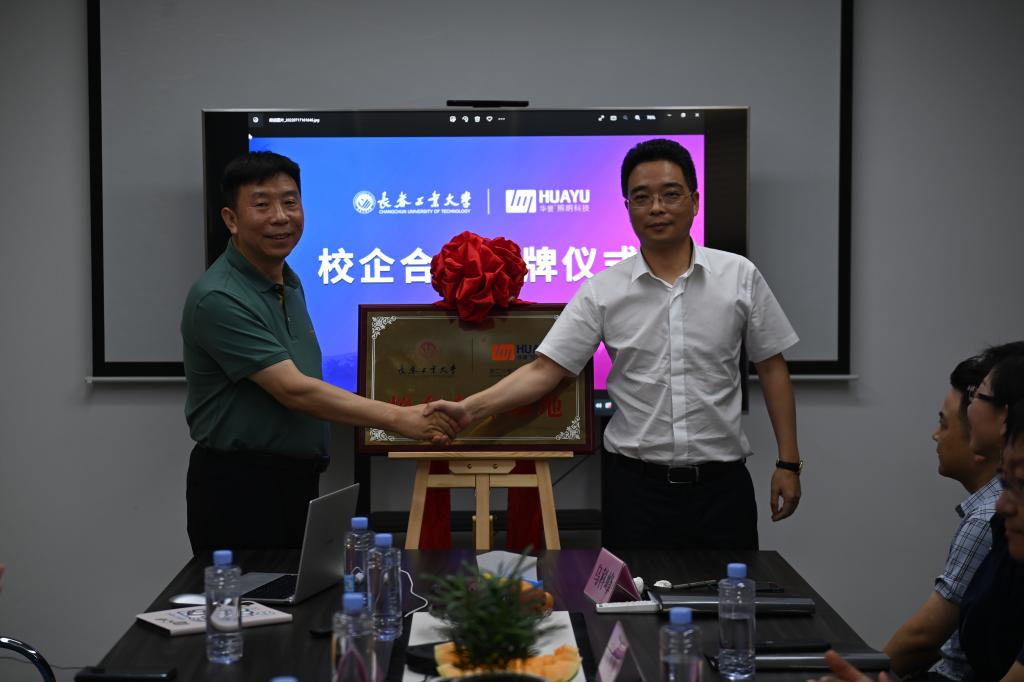 公司党委书记孙长智与俞华先生共同为校企合作基地揭牌