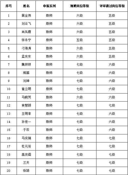 专业技术岗位聘用推荐结果公示