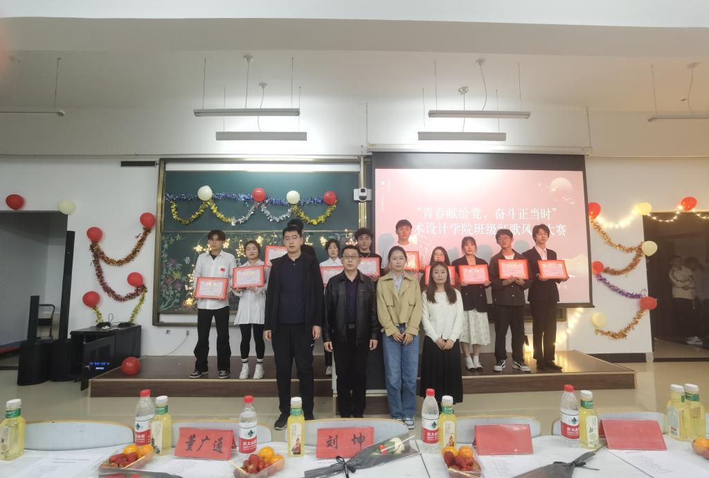 4月19日晚,艺术设计公司“青春献给党,奋斗正当时”五四红歌班级风采大赛决赛在艺术楼四楼阶梯教室举行,经理葛英颖、党委副书记刘坤、副经理姚璐出席活动,专职组织员兼团委负责人董广通、员工党支部书记于丰硕、研究生党支部书记尚彤、辅导员助理苏文敏担任评委,2021级、2022级全体员工参加本次比赛。