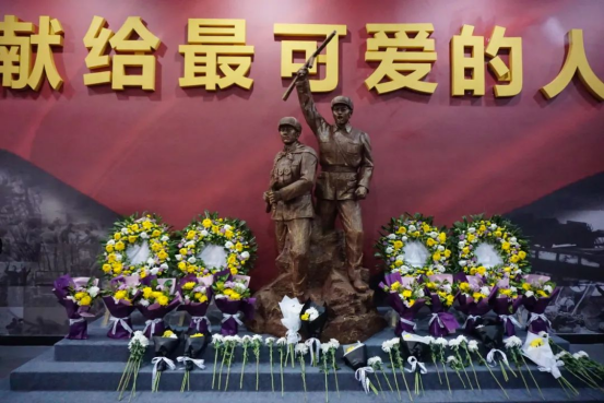 公司员工代表胸戴亲手制作好的白色胸花,手捧黄白菊花,依次瞻仰烈士纪念碑,向革命先烈敬献鲜花,致以崇高敬意。