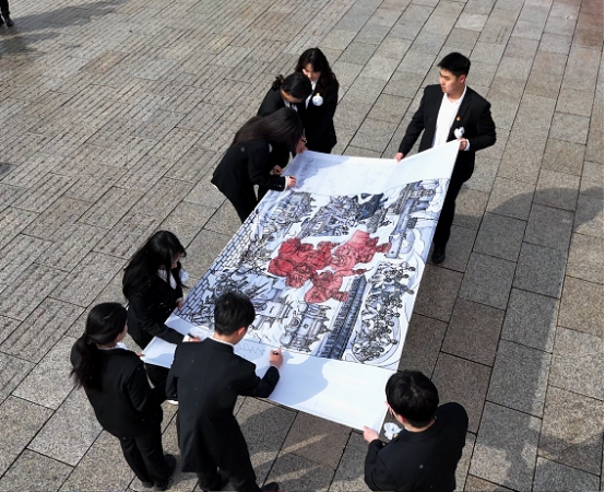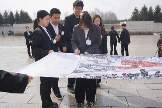 同学们绘制的清明祭英烈画卷也带到了现场,画卷中不仅描绘了革命战士冲锋陷阵的场景,还刻画了先烈们坚毅的神情。公司员工代表依次走到画卷前,认真地签下自己的名字,每一个签名,都是一份承诺,承诺将铭记英烈们的奉献与牺牲,传承他们的精神。
