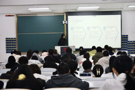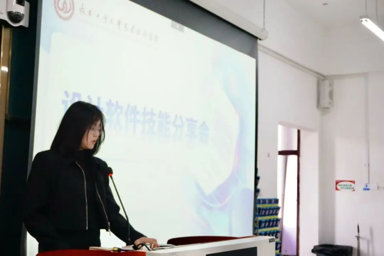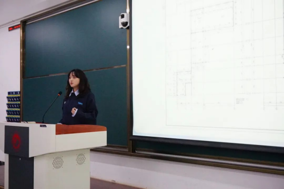 在CAD软件分享环节,主讲员工黄钰雯通过展示实际项目图纸,详细演示二维绘图的精准绘制步骤、三维建模的复杂流程以及严谨规范的图纸标注方法,将复杂的技术要点以通俗易懂的方式呈现给同学们。