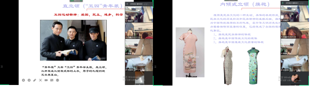 在授课过程中以中华立领为例,积极开展思政教育:通过讲解“五四”青年员工装,引入“五四运动”积极引导员工立志高远,脚踏实地。弘扬爱国、进步、民主、科学的伟大五四精神,爱国主义是我们民族精神的核心,是中华民族团结奋斗、自强不息的精神纽带。同时又以旗袍领为例深入挖掘服装的文化内涵、寻求文化底蕴,形成了稳健持重的特点,突出国人精神气质,增强员工的仪态仪表教育。