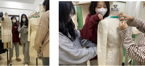 服装立体结构设计课程积极克服线上实验教学的诸多困难,积极探讨疫情期间实验教学的可控性与实现性。在实验教学过程中理论教师与实验教师黄珂琤老师同时在线辅导,采用项目驱动法(员工以寝室为项目小组),以流行趋势和市场需求为依据,将立体结构设计的知识点和能力点融入其中,在项目实施过程中,员工模拟项目主管、款式设计师,结构设计师,工艺设计师,样板设计师等角色,教师则给予积极指导。极大的丰富了实验教学内容,使员工在实验操作过程中从获得感性知识上升到理性认识并获得实践能力的提高。同时,也激发了员工的学习热情和积极性。