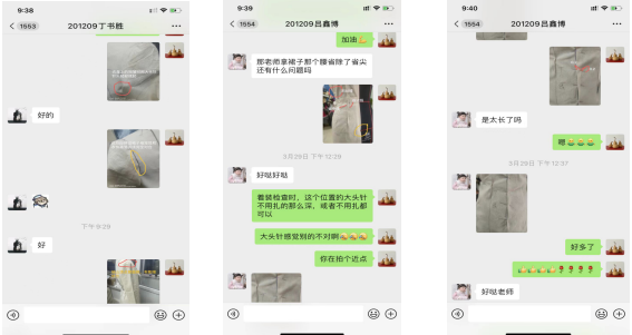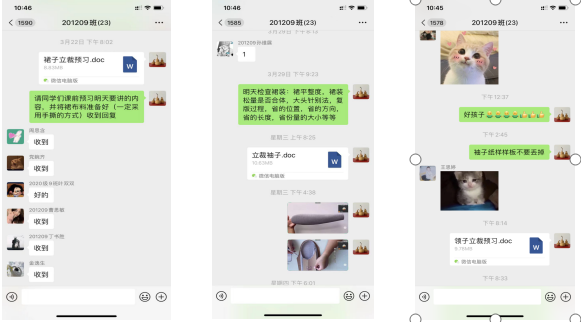 李凤仙老师在业余时间通过微平台解答员工疑问,协助员工完成不同款式的立体结构设计,切实做到线上和线下教学紧密结合,使线上课程的教学交互从课前贯穿课中至课后,实现“任务引领、教师主导、员工主体”。