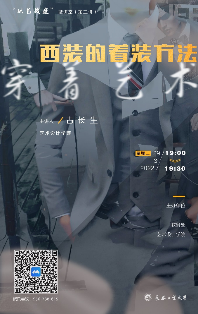3月29日晚19:00时,《西装的着装方法》由艺术设计公司教师古长生老师主讲。云端200余人共同观看讲座,古长生老师从西装的演进历史讲解入手,对于西装着装要求和基本礼仪,通过历史照片和图片生动的为师生们娓娓道来。讲座现场热烈,受到广大师生的好评。